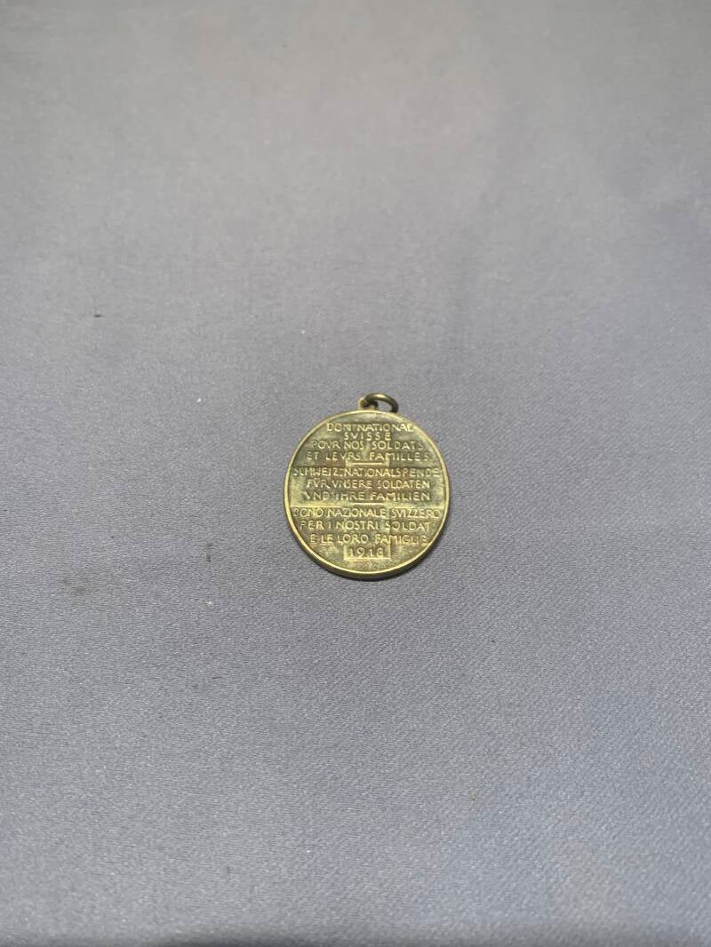 10. Un pendentif en métal pour le don national suisse pour les soldats et leurs familles daté de 1918.